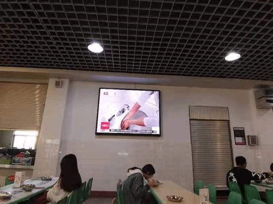 玉溪师范学院品味苑食堂滚动播放爱国卫生广告视频