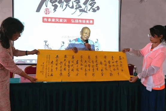 在河南省家风家教示范基地,南阳师范学院教授聂振弢为大家阐述加强家庭家教家风建设的重要意义 图片来源:南阳市妇联