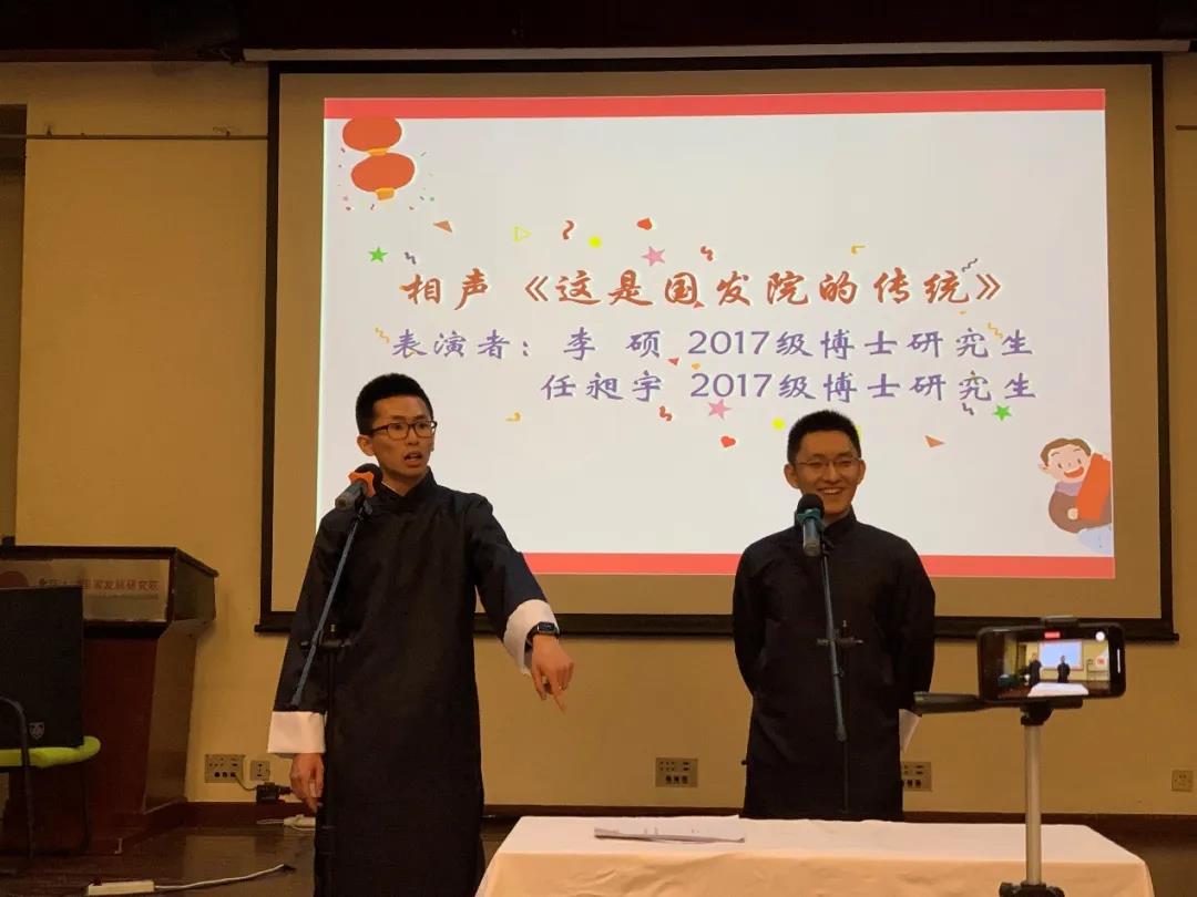 除了帮助同学们彼此相识互助,任昶宇还致力于给大家带来更多的“欢乐”。在学院文艺晚会上,他模仿自己最爱看的综艺“吐槽大会”,给同学们带来了一场结合时事、别开生面的“吐槽小会”。从博一到博三,他已经连续三年在国发院新年晚会上承担表演语言类节目的“重任”。和对体育的满腔热情一样,尽管自我评价“水平不佳”,只是“停留在兴趣层面,没有特别精深专业”,但他最大的特点就是“愿意去尝试”,无论是对他人还是对自己,这种过程能够带来的快乐本身充满了意义。再创造快乐之余,任昶宇在学生工作中的努力也得到了认可,任昶宇先后获得了北京大学学生会组织标兵和北京大学高君宇奖等荣耀。